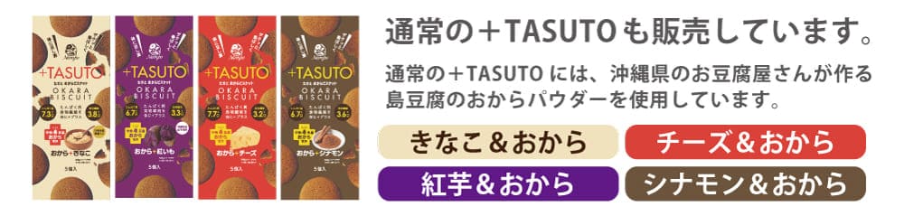 ※+TASUTO miniには、おとうふ工房いしかわで作られた、国産大豆100%のおからパウダーを使用しています。
